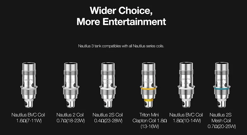 Ο Nautilus 3 είναι συμβατός με όλη την σειρά αντιστάσεων Aspire Nautilus BVC, ώστε να βρείτε ποια ταιριάζει ακριβώς στο ατμιστικό σας γούστο