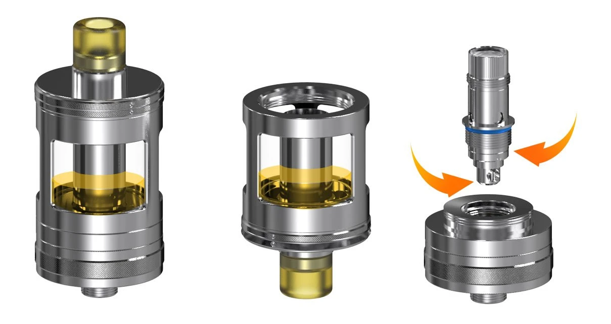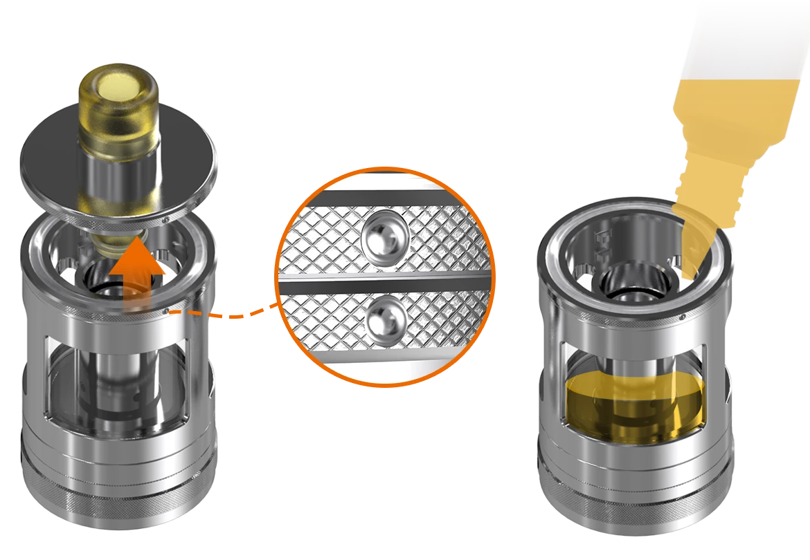 Ο Nautilus GT γεμίζει από πάνω απλά ξεβιδώνοντας το πάνω μέρος του ατμοποιητή. Οι μεγάλες τρύπες επιτρέπουν το γέμισμα από διαφορετικούς τύπους μπουκαλιών