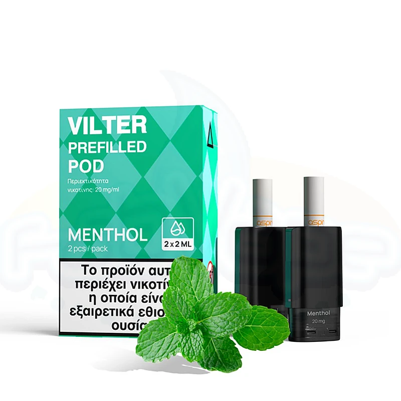 Συσκευασία με 2 Pods 2ml, περιεκτικότητα νικοτίνης 20mg, για χρήση αποκλειστικά με τις συσκευές Aspire Vilter Pod Kit, Aspire Vilter S Pod Kit και Aspire Vilter Fun Kit.