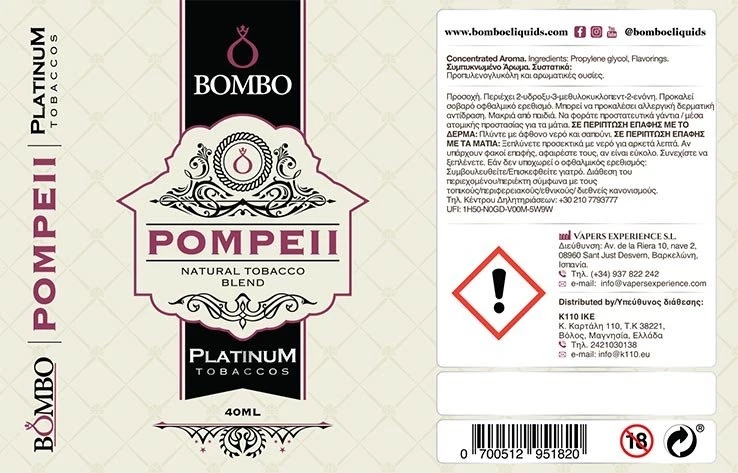 Ετικέτες: Bombo eLIQUIDS, Bombo - Flavor Shot Platinum Tobaccos Pompeii, Bombo