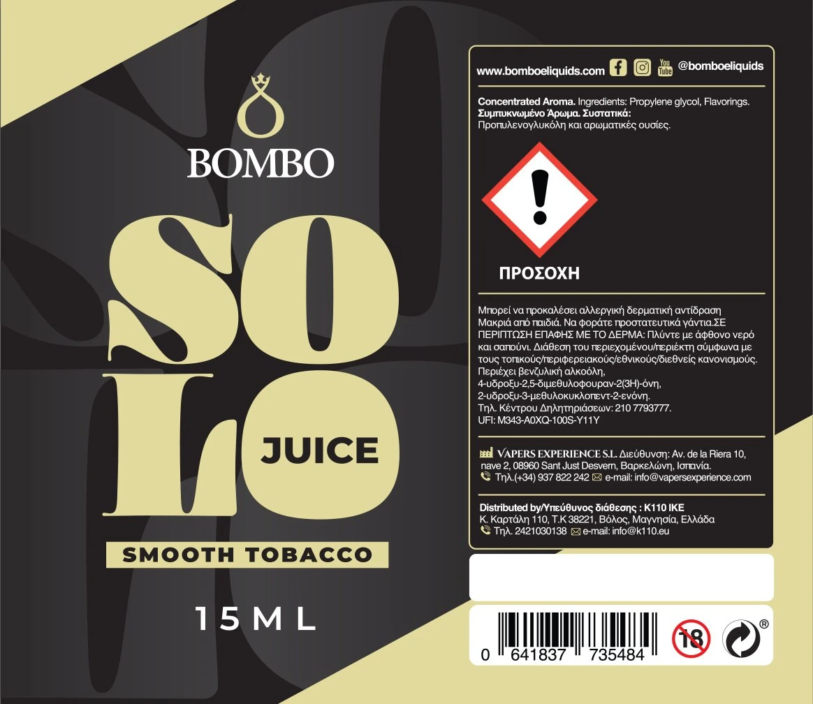 Ετικέτες: , Bombo Solo - Flavor Shot Smooth Tobacco, Bombo