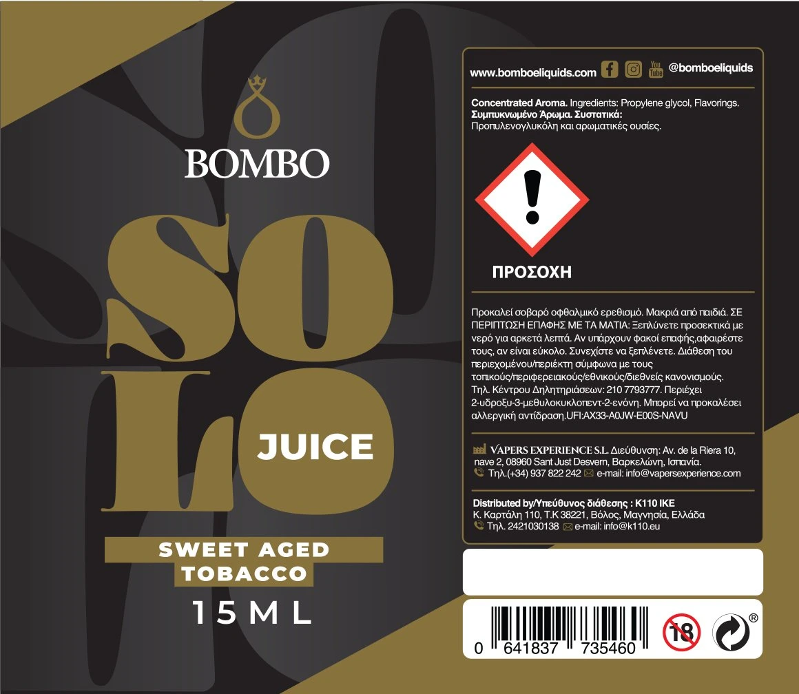 Ετικέτες: , Bombo Solo - Flavor Shot Sweet Aged Tobacco, Bombo