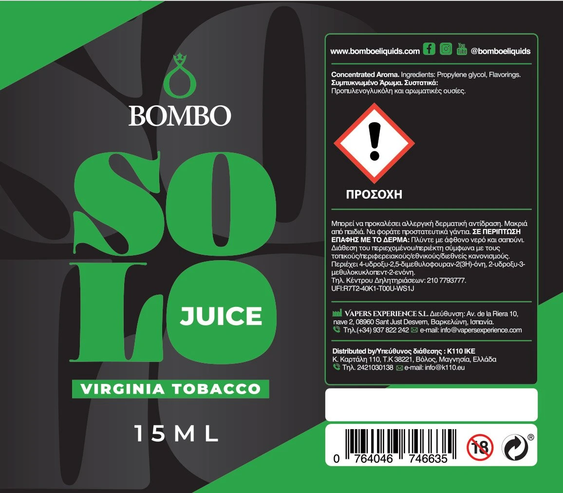 Ετικέτες: , Bombo Solo - Flavor Shot Virginia Tobacco, Bombo