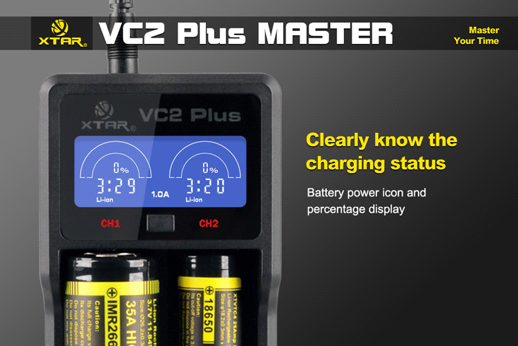Ο VC2 Plus είναι ένας έξυπνος πολυφορτιστής ο οποίος διαθέτει χρονόμετρο αντίστροφης μέτρησης, που εμφανίζει για κάθε κανάλι τον υπολοιπόμενο χρόνο φόρτισης.