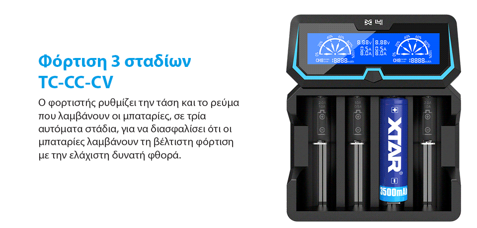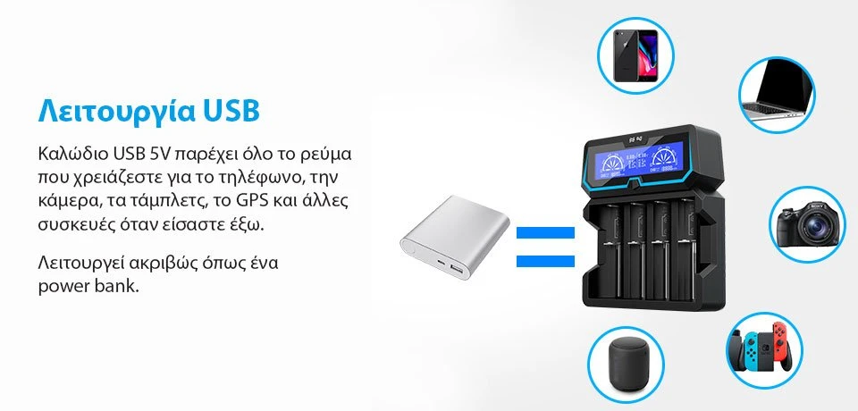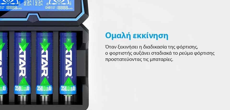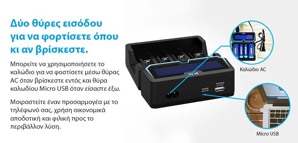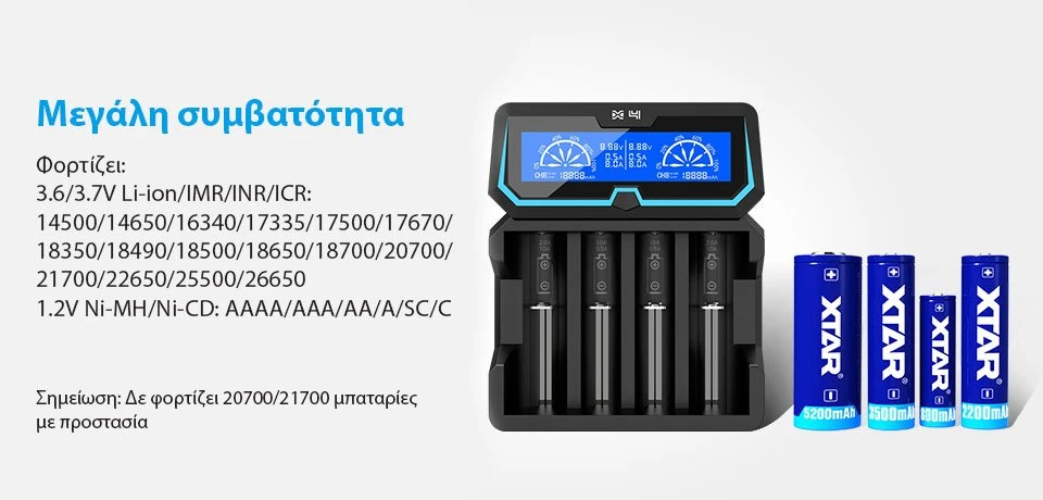 - Μεγάλη συμβατότητα. Ισχύει για μπαταρίες 3.6V/3.7V Li-ion/IMR/INR/ICR, 1.2V Ni-MH/Ni-CD