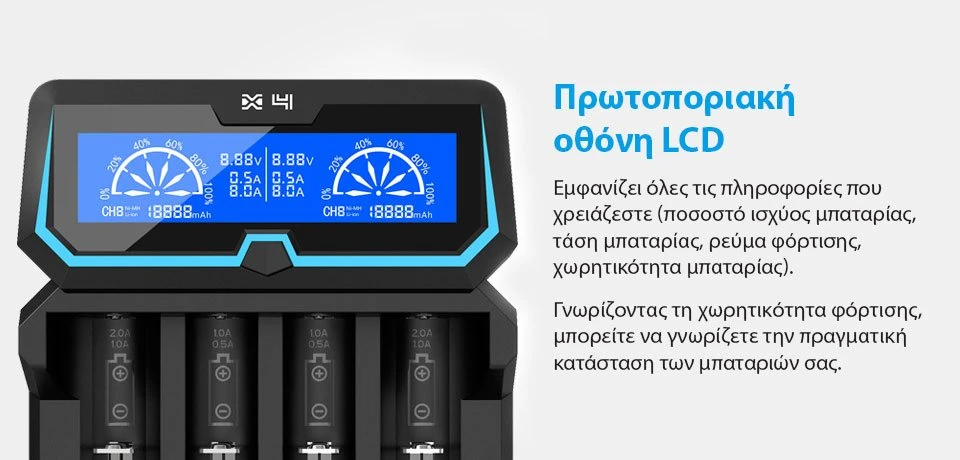 Φορτιστής ταχείας φόρτισης LCD Li-ion/ Ni-MH μπαταριών με LCD οθόνη