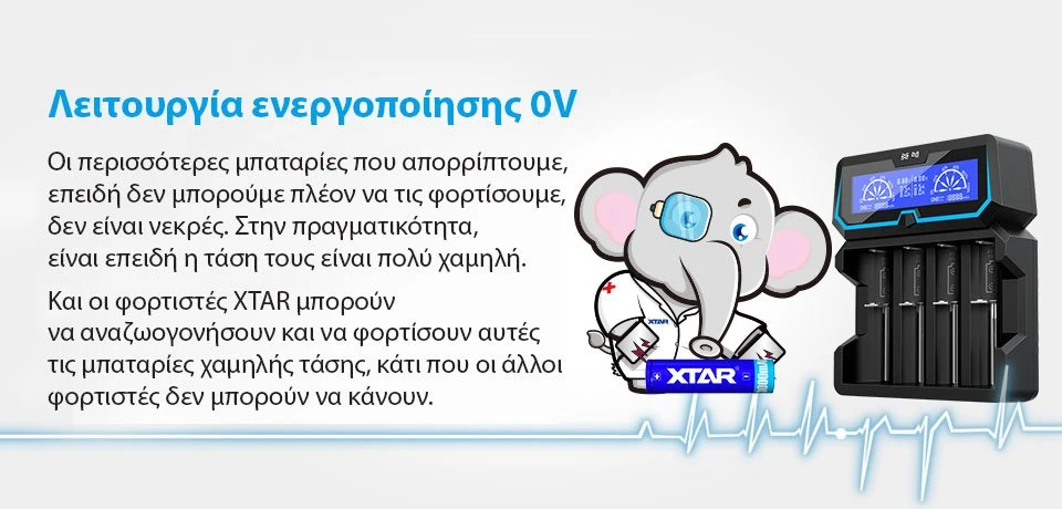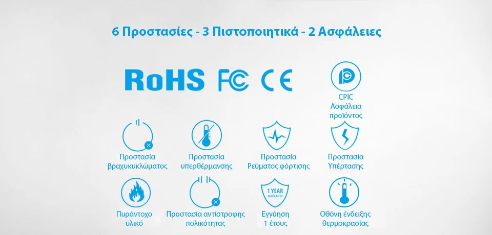- Λειτουργία ενεργοποίησης 0V, αναζωογονεί υπερβολικά αποφορτισμένες μπαταρίες