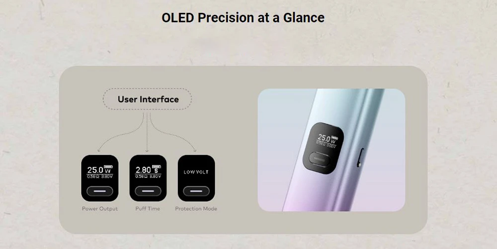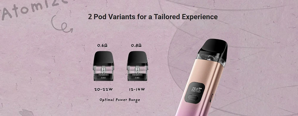 Αξιοποιήστε τη βέλτιστη ισχύ με την έξυπνη αναγνώριση pod της Trine. Από το ομαλό pod 0,8Ω στα 14W έως το έντονο pod 0,6Ω στα 25W, απολαύστε εξατομικευμένες εμπειρίες ατμίσματος με ευκολία.
