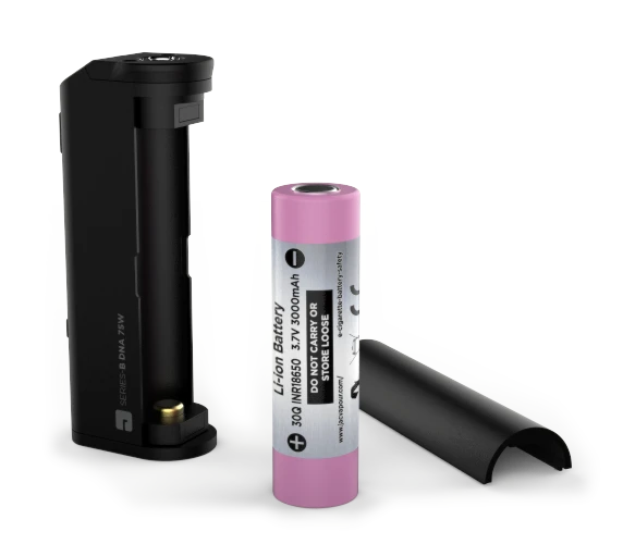 Αποσπώμενη μπαταρία Συνδυάστε το SERIES-B DNA 75W με μια υψηλής ποιότητας μπαταρία 18650 για καλύτερη απόδοση και εκμεταλλευτείτε όλα τα χαρακτηριστικά του. Συνιστάται μπαταρία που να υποστηρίζει μέγιστη σταθερή ένταση τουλάχιστον 20Α. |